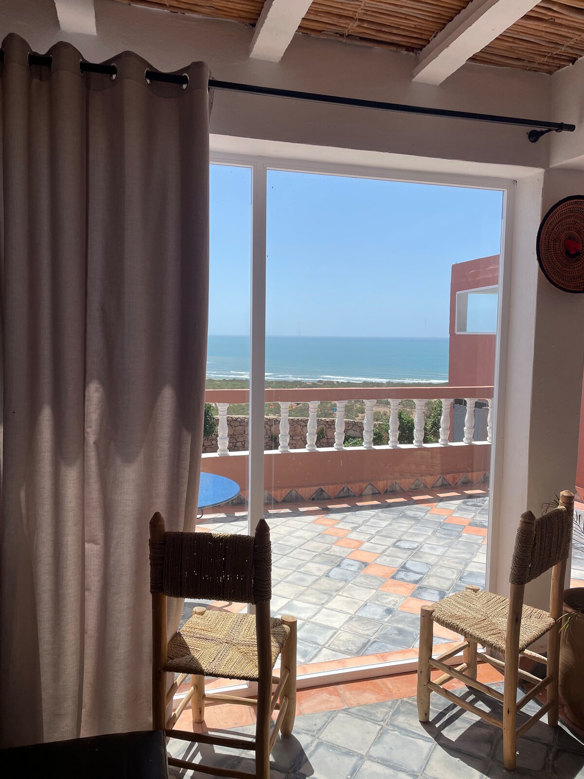 Our peaceful duplex studio in Tafedna is ideal for families and surfers.offering stunning views of the Atlantic Ocean and surrounding mountains. Just steps from the beach & surf spots, on the first floor it features a Moroccan traditional Berber living room, a spacious kitchen with fridge & a panoramic view from terrace. Close to restaurants,coffee shops & groceries, it's a serene escape from mass tourism. Enjoy hiking, swimming, surfing and fresh seafood , with easy access to Essaouira airport.