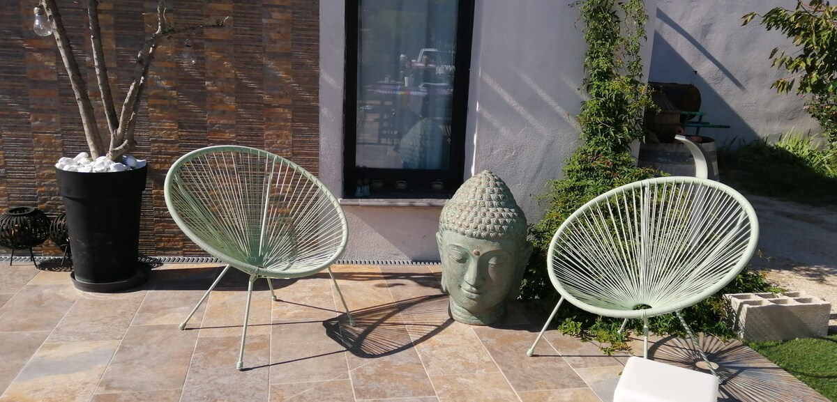 Pequeño LOFT nuevo de estilo industrial y moderno de 40 m2 para 2 personas (pero posibilidad de dormir 1 niño en el sofá auxiliar). Este Loft se encuentra en una finca vitícola en el corazón de los viñedos. Es contiguo a la casa de campo de los propietarios, pero totalmente independiente. La entrada se realiza al norte de la bastida. Acceso a la piscina de los propietarios(del 01/07 al 15/09) y al campo de petanca todos los días de 10:00 a 18:00. El día de su llegada la piscina está disponible hasta las 19:00.