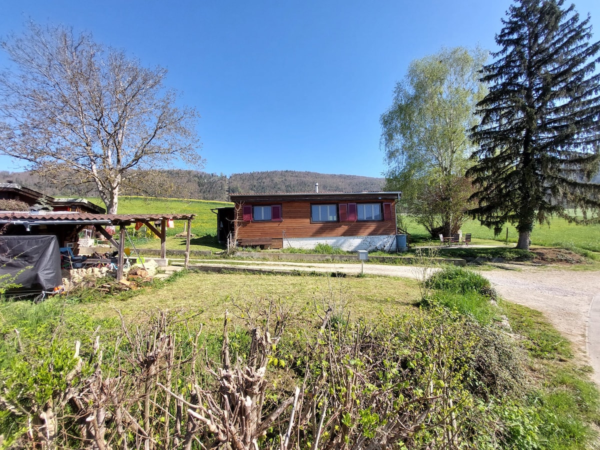Chalet encaramado en un nido de águila en el campo. Ideal para vacaciones en familia o en pareja en el corazón de la naturaleza. Tranquilidad y relajación aseguradas. Restaurantes de Rangiers y Caquerelle a 500 m con tiro con arco, footgolf, swingolf, parque infantil y salidas para numerosas rutas de senderismo. A cinco minutos en automóvil de la ciudad medieval de St-Ursanne y de la orilla del Doubs. Chalet con vacas y burros cerca para información