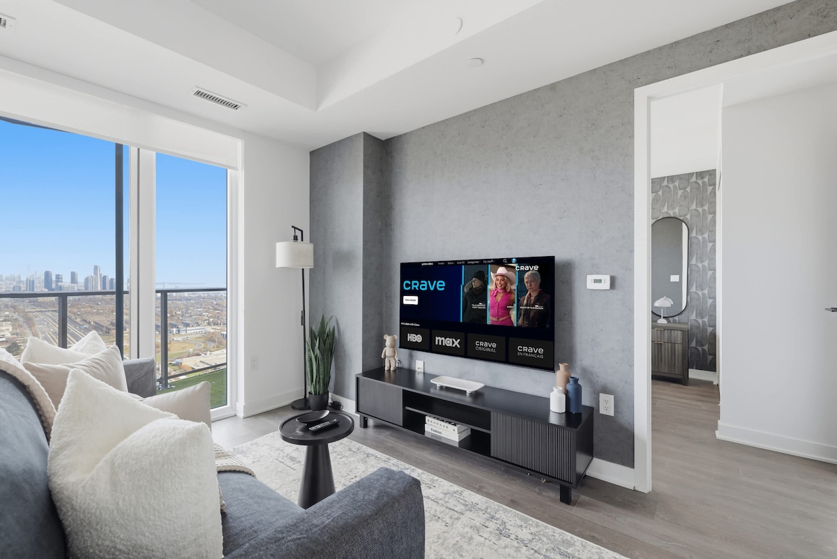 Apartamento contemporáneo de 2 dormitorios y 2 baños en el extremo oeste de Toronto. Capacidad para 6 personas con una cama tamaño queen, una cama completa y un sofá cama. Cuenta con un televisor inteligente de 55 pulgadas, cocina totalmente surtida, patio privado, lavandería en la suite y estacionamiento gratuito. Perfecto para familias, amigos o profesionales que buscan comodidad moderna con fácil acceso al centro de la ciudad y a tiendas y restaurantes cercanos.