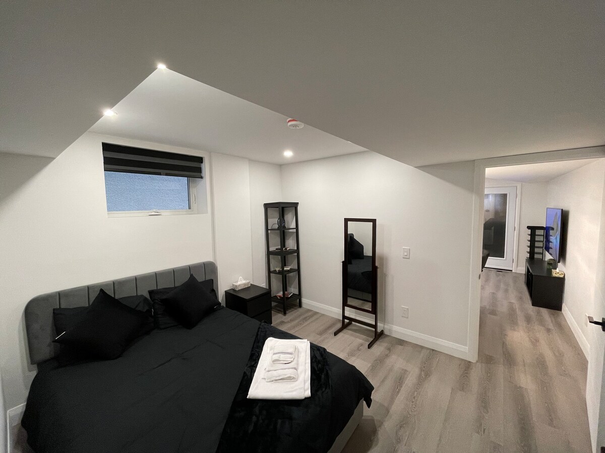 **No se permiten fiestas ni reuniones** Apartamento recientemente renovado, grande, espacioso y acogedor a 10 minutos del aeropuerto. Cocina nueva, baño con ducha, suelo laminado, armario empotrado, sala de estar y lavandería. ¡Disfruta de una cómoda cama tamaño KING! Barrio tranquilo y apto para familias. Cerca de SquareOne, Sherway Gardens, MiWay, autopistas y el centro de la ciudad. Cerca de centros comerciales, supermercados y centros recreativos. Entrada completamente separada. Lugar de estacionamiento gratuito en la entrada.