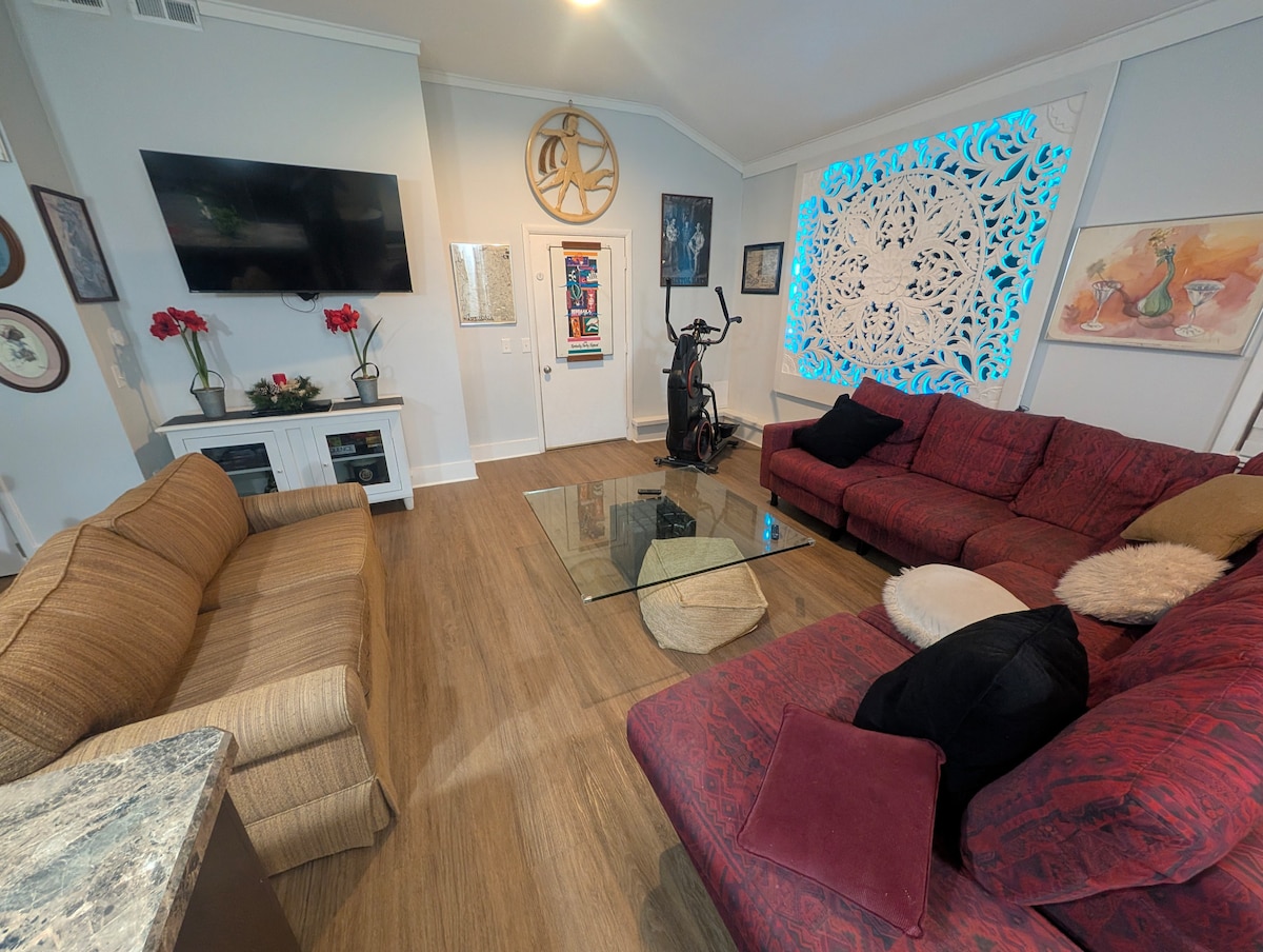 Este es un alojamiento privado, pero hay una SUITE PARA HUÉSPEDES adjunta a este alojamiento (también disponible en Air BNB). Sin embargo, NO hay espacios compartidos. Cada alojamiento tiene una entrada independiente. Cerca de tiendas, restaurantes. 1 dormitorio, 2 camas tamaño queen, 1 baño, cable/wifi, wi/ aperitivos y servicios equipados. Entrada a la caja de seguridad para llaves, lavadora/Secadora. El sofá se pliega hacia abajo con una función extraíble en la base para ver fotos o ponte en contacto con nosotros para operar.