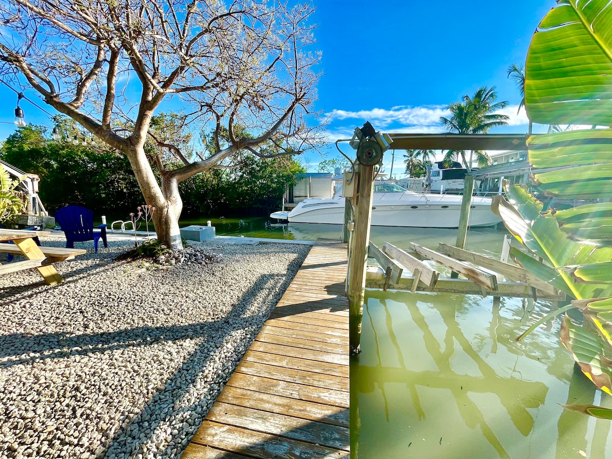 Retiro frente al mar en Key Largo | Tiki, muelle y piscina