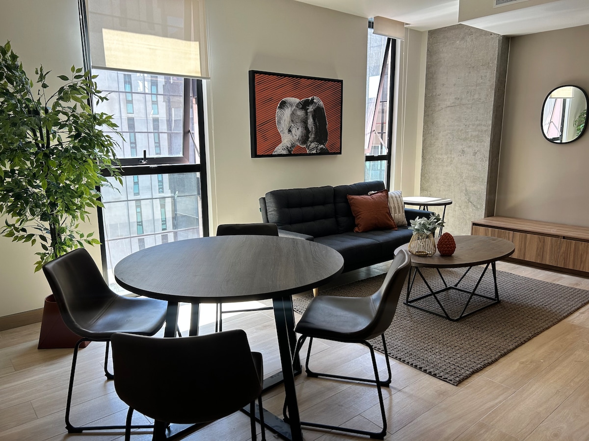 Este lugar tiene una ubicación estratégica: ¡planear tu visita será muy fácil! A tan solo una cuadra de Chapultepec y de la colonia americana, donde encontrarás bares, restaurantes, comercios, galerías y bazares. Además, si necesitas transporte, tenemos una estación de Mi Bici (bici de renta al público) justo fuera del lobby principal de la torre. La torre ofrece múltiples amenidades como gym,coworking, social room, rooftop y cuenta con aire acondicionado en cada recamara para tu comodidad.