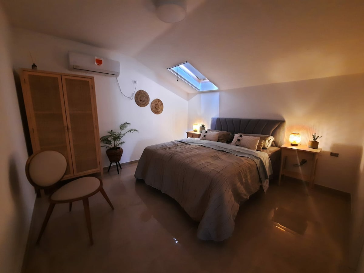 Disfruta de la tranquilidad del impresionante y hermoso pueblo de Mazkeret Batya y alójate en el centro, una impresionante suite con 2 habitaciones, entrada independiente y un agradable patio. Hay todas las instalaciones para relajarse y planificar tu viaje: TV de 50pulgadas en el dormitorio principal con Netflix y YouTube, PC con Internet y pantalla de 24 pulgadas, cafetera Nespresso, libros y más... A 20 minutos a PIE de la estación principal de tren. A 35 minutos de Tel Aviv y la playa. A 5 minutos de varios centros comerciales y restaurantes.