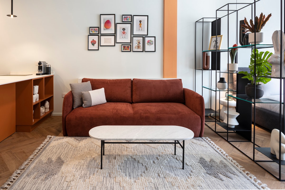 Lujoso estilo boutique de 1 dormitorio en el centro de Tel Aviv, lleno de luz natural y diseño refinado. Cocina totalmente equipada con vitrocerámica de inducción, horno y microondas, lavadora-secadora, dormitorio sereno y elegante sala de estar. A pocos pasos de las estaciones HaShalom y Yehudith, Sarona y el centro comercial TLV Fashion Mall.