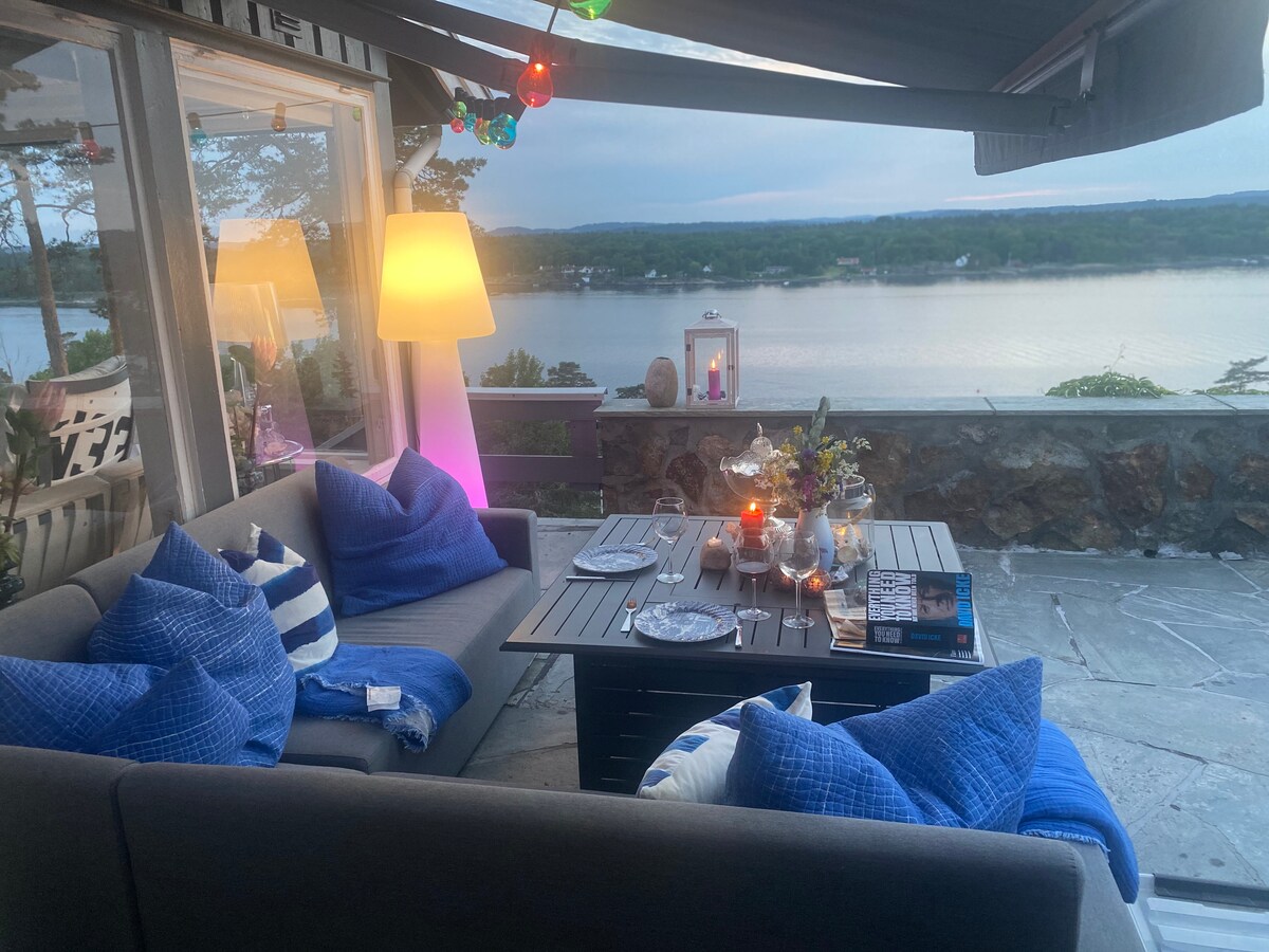 Villa Sola Petit, un escondite único en la isla de imágenes de Husøy a solo unos minutos de Tønsberg. Tønsberg es la ciudad más antigua de Noruega con una rica historia que se remonta a la era vikinga. La ciudad está situada junto al mar, debajo de una montaña con las ruinas de un castillo vikingo. Hoy en día es una ciudad bulliciosa con tiendas, restaurantes, galerías y museos.