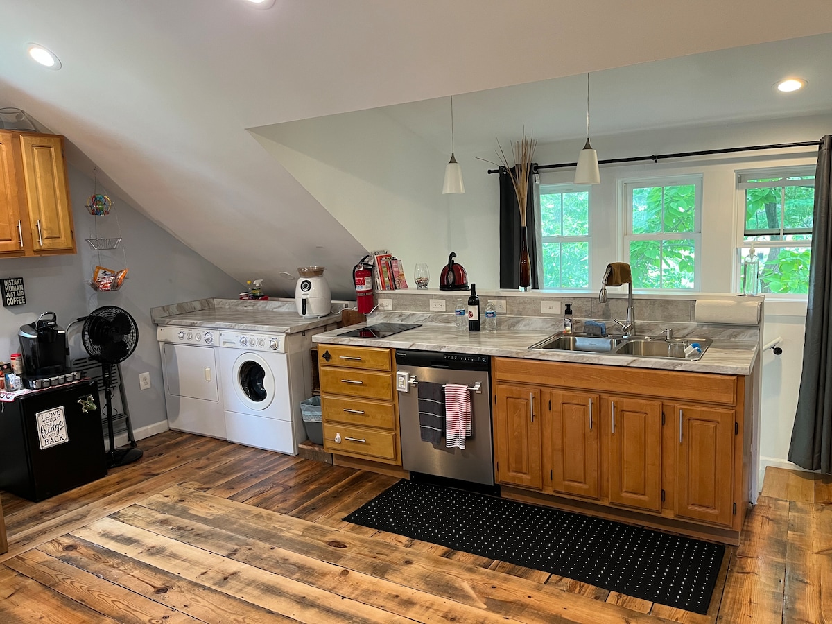 Disfruta de un apartamento moderno, elegante, totalmente amueblado y céntrico de 750 pies cuadrados con tu propia entrada privada. Este dormitorio tiene una lavadora/secadora apilable de tamaño completo, nevera de tamaño completo, estufa, lavavajillas y sofá cama. Completamente remodelado y diseñado para satisfacer las necesidades de la vida actual. A solo cinco minutos a pie del parque de la ciudad, con un sinfín de senderos naturales arbolados a lo largo de un arroyo. En Falls Church, junto a Annandale Rd, dentro de la carretera de circunvalación y a solo 15-20 minutos de Washington, DC.