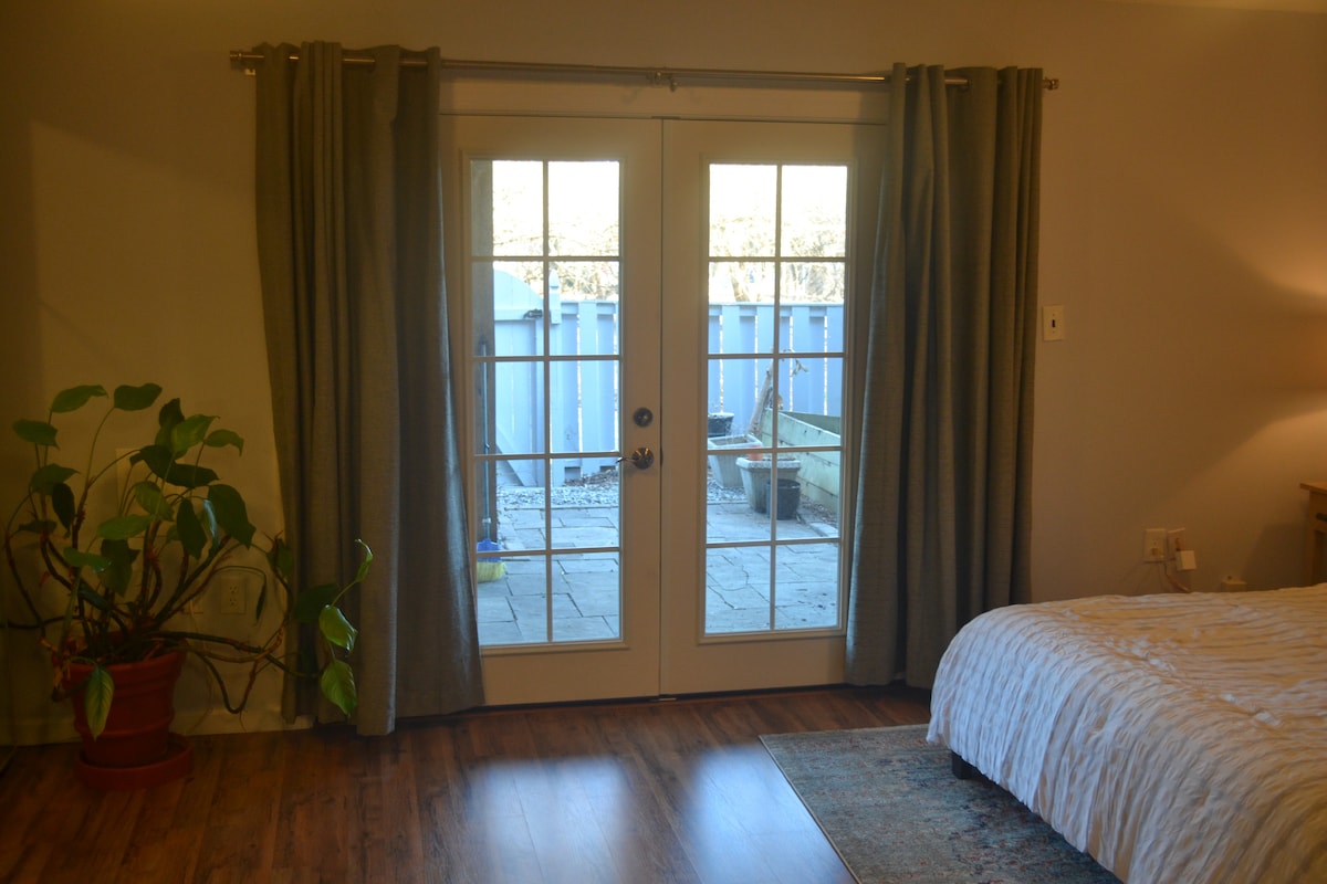 Precioso apartamento estudio independiente y privado rodeado por un parque de 3,5 acres. Amplio y luminoso alojamiento lejos de casa con una cama tamaño queen, una cama individual y un colchón hinchable disponible. Lavadora secadora en la unidad. Baño privado completo y cocina con quemador de inducción de 2 hornillas, horno, microondas, cafetera, olla caliente, arrocera y elementos esenciales de cocina. Camina hasta el metro o coge el autobús en la esquina. Bares, restaurantes, tiendas de comestibles y otras tiendas y entretenimiento a poca distancia a pie o en metro rápido a DC.