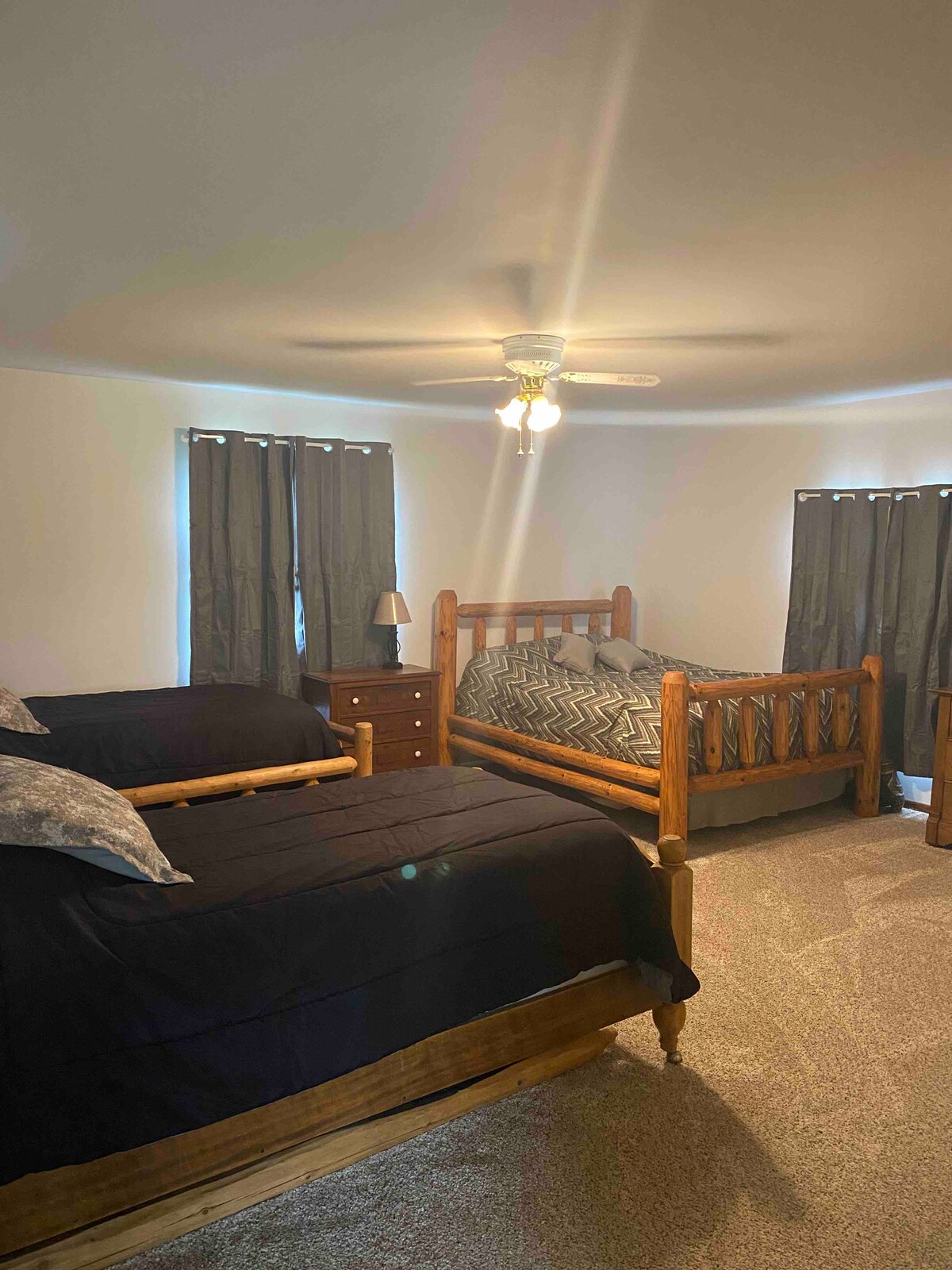 Rustic log home on 17 private acres just minutes from Frankenmuth’s Little Bavaria and Birch Run outlets! Enjoy high-speed Wi-Fi, 3 TVs, cozy fireplace, coffee & wine bars, and a covered outdoor kitchen with large Blackstone griddle & BBQ. Swim or fish in scenic ponds, relax by the firepit, or park your RV with electric hookup. Weddings and group retreats available for an additional fee—our event barn and property create unforgettable memories. Book your stay today