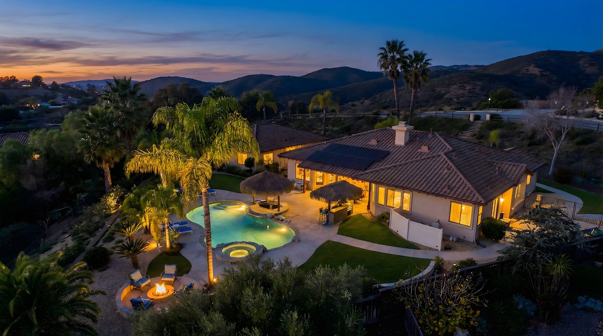 Large 3 bedroom, 3 full bath, 3000 SF gated single family house with amazing mountain views located at the end of a private road on a 2+ acre lot in the hills in beautiful Fallbrook! We have comfortably hosted groups of up to 40 people. Very private. 2 of the 3 bedrooms have king beds. House was completely updated by the current owners in 2014. Recent updates include new sleeper sofas in 2021, new BBQ grill in 2022, Tesla Powerwall in 2023, new kitchen and patio table seats in 2024.