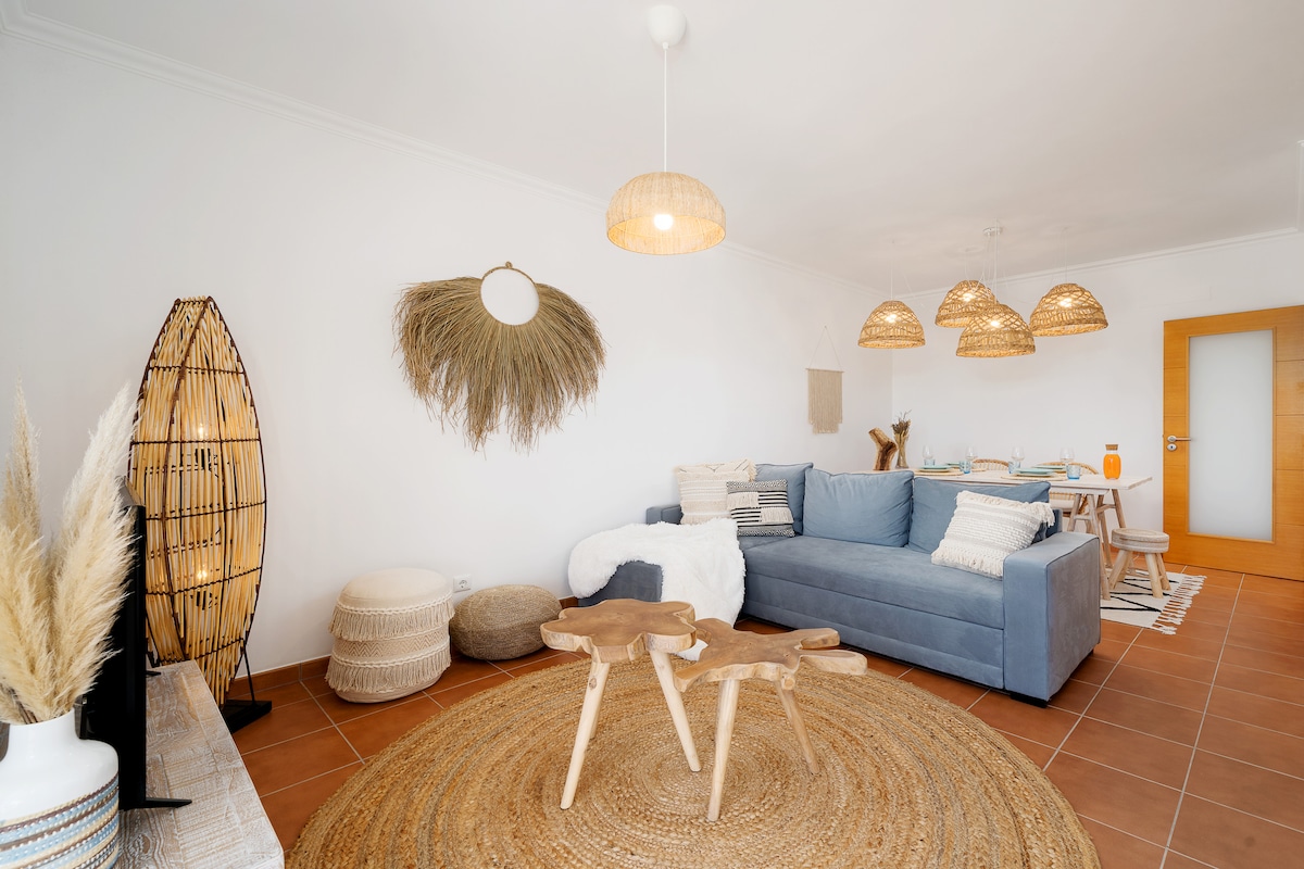 Nuevo y elegante apartamento de 2 dormitorios muy cerca de la playa. Nuestro apartamento te invita a disfrutar de lo mejor del suroeste de Portugal, donde encontrarás días soleados, hermosas playas, excelentes lugares de surf para todos los niveles, rutas en bicicleta y rutas de senderismo. El apartamento tiene 1 suite principal, un dormitorio con 2 camas individuales y un sofá cama en el salón, con capacidad para un máximo de 6 personas. En el garaje privado del apartamento hay bicicletas y tablas de surf gratuitas para que nuestros huéspedes las utilicen durante su estancia.