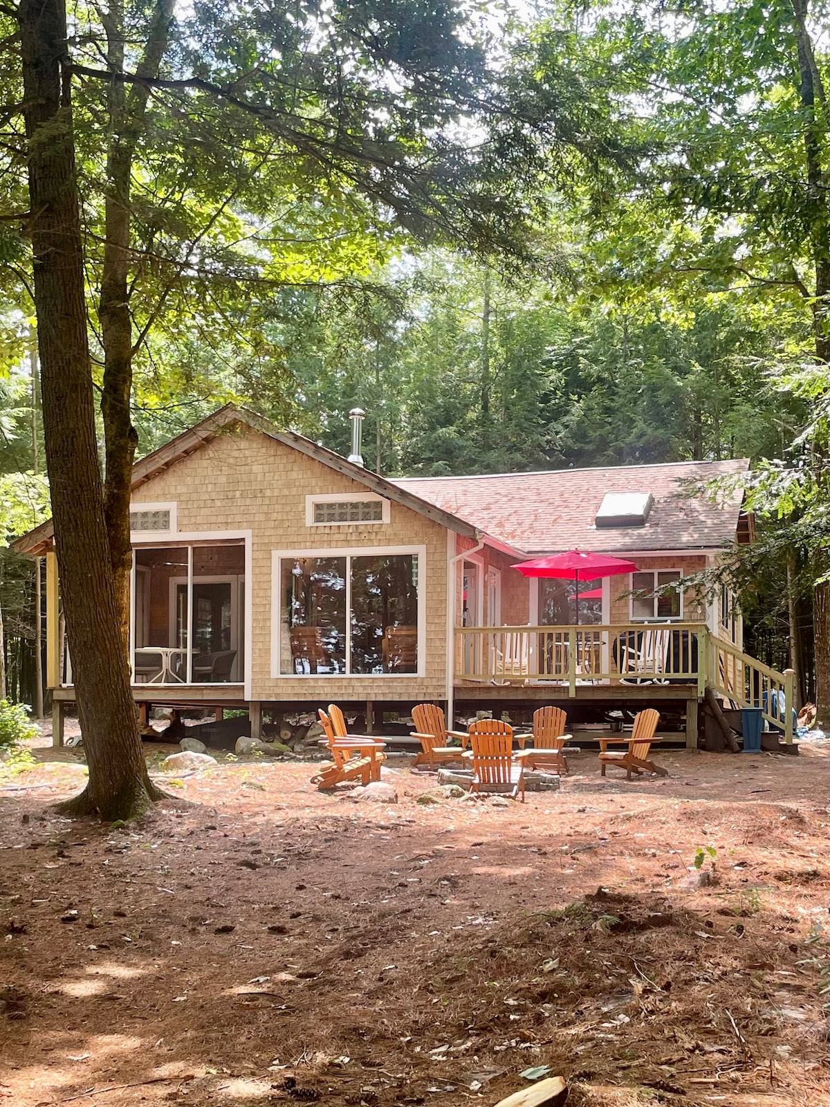 Auténtico campamento de Maine. Cedar Crest está en el prístino lago Echo en Fayette, ME (a 20 minutos de la ciudad de Augusta). Un campamento tradicional de Maine de 1950 a solo 25 pies del lago, con 1000 pies cuadrados, 3 dormitorios (capacidad para 6 personas) y espacio al aire libre. Renovado con tablas de pino blanco oriental, estufa de leña y una bomba de calor para las mañanas y noches frescas. Un baño y una cocina totalmente equipada que cuenta con una encimera de pino de borde vivo. Decoración única del campamento. Mínimo 3 noches (mínimo 2 noches septiembre/octubre)