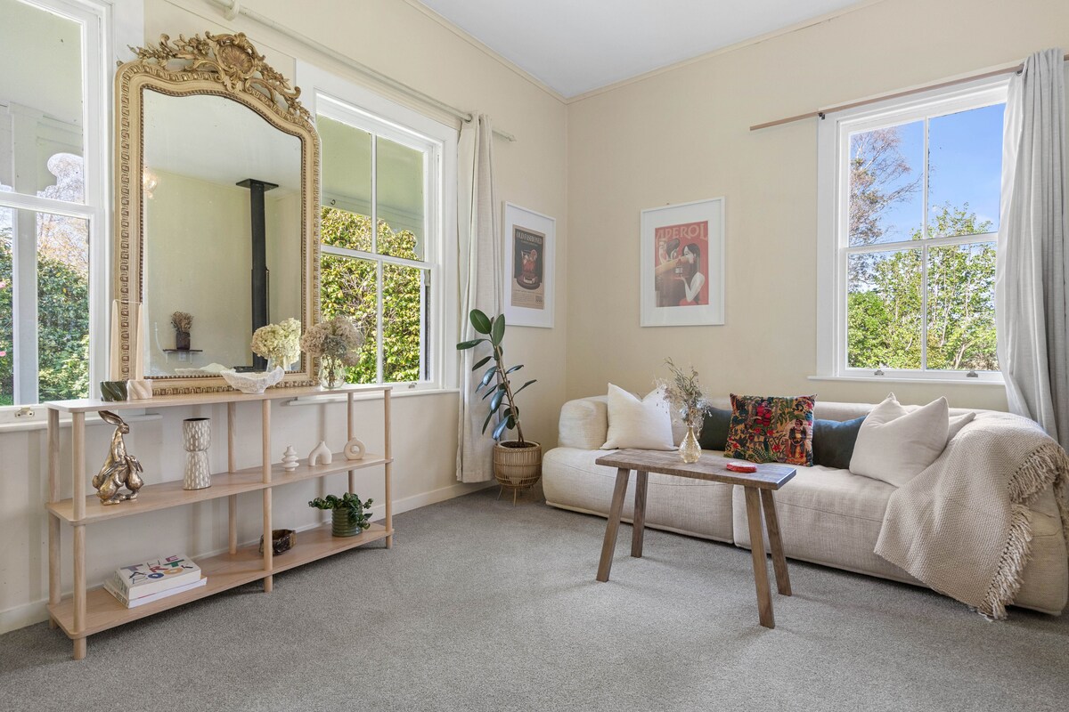 Retiro en una granja ligero y ventilado. El edificio vintage (alrededor de 1950) se ha actualizado y reconstruido según los estándares modernos, conservando su encanto único. Situada a solo 5 minutos en coche del pueblo de Martinborough o a 9 minutos en coche de Greytown, esta casa de campo es el lugar ideal para alojarte durante un fin de semana y explorar las numerosas bodegas y actividades de Wairarapa. ** No hay utensilios de cocina. Cabaña adecuada para comer fuera**. Solo nevera pequeña para bebidas. No se admiten mascotas Wifi limitado. Cobertura irregular dependiendo de tu dispositivo.