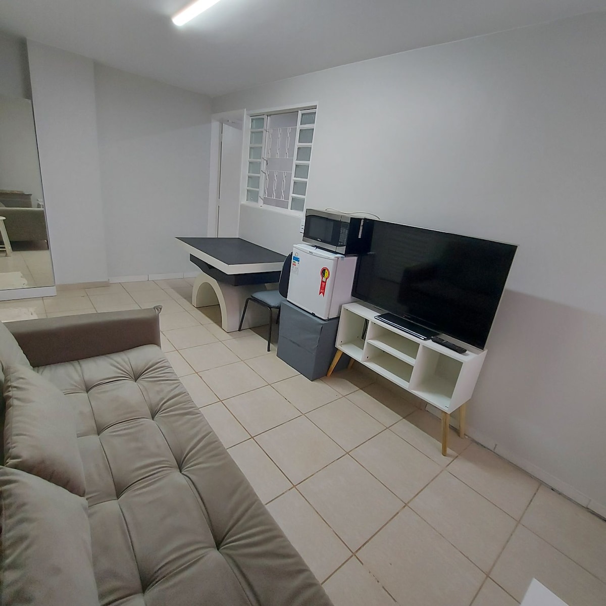 Ubicación en Brasilia, situado en el Ala Norte del Plano Piloto, cerca de la Universidad UniCeub. El lugar tiene entrada independiente y consta de una sala con TV, sofá cama, ventilador, armario con espejos, mesa de comedor, minibar y microondas. También cuenta con una suite separada con cama doble, escritorio y baño. Junto al alojamiento hay varias tiendas como mercados, cafetería, americanas, entre otros. El lugar tiene wifi y la TV tiene chromecast. =)