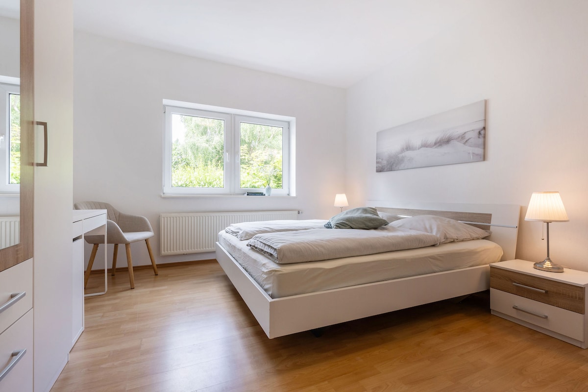 Desde este alojamiento céntrico se puede llegar en poco tiempo a todos los puntos de interés de la isla soleada de Fehmarn. La playa de Bojendorf está a pocos minutos en coche, y los bonitos cafés de Orth o Lemkenhafen están prácticamente a la vuelta de la esquina. Se puede ir andando a los comercios. El apartamento está en el 1er. Planta superior con vistas al jardín y al histórico campanario de Petersdorf. 4 personas pueden alojarse con nosotros- la cocina está totalmente equipada, las camas son grandes y cómodas.