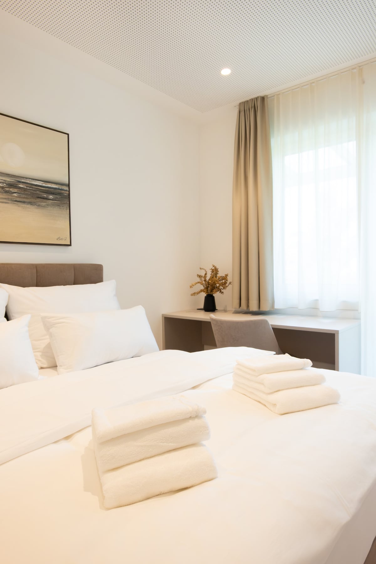 Te damos la bienvenida a nuestro exclusivo departamento que combina comodidad y elegancia. Este departamento de alta calidad de 55 metros cuadrados cuenta con todo lo que necesitas para una estancia inolvidable. ¡NO SE PERMITEN MASCOTAS! ** Aspectos destacados del espacio:** – Balcón de 18 metros cuadrados: ideal para desayunar al aire libre o una noche acogedora al atardecer. - El departamento es elegante y modernamente amueblado. - Se incluye un espacio de estacionamiento seguro en el estacionamiento subterráneo.