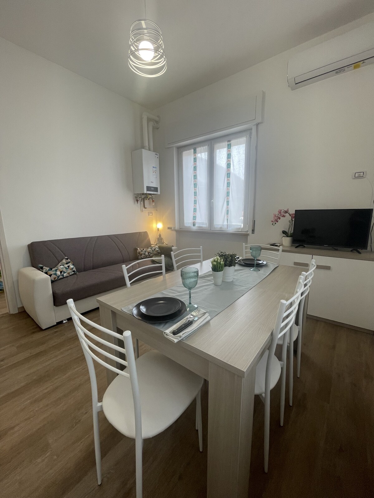 Situado en una zona estratégica de Milán, entre las más verdes de la ciudad, el apartamento moderno, espacioso y luminoso, consta de: - 1 salón con sofá cama - 1 cocina - 1 baño con cabina de ducha de lujo - 1 dormitorio A 5 minutos de la parada de Bonola M1 16 minutos en metro del centro histórico A 25 minutos a pie de San Siro, para los amantes del fútbol y los conciertos, evitarás el tráfico y los problemas de aparcamiento. A 5 minutos a pie del centro comercial con: supermercado, tiendas y bares.