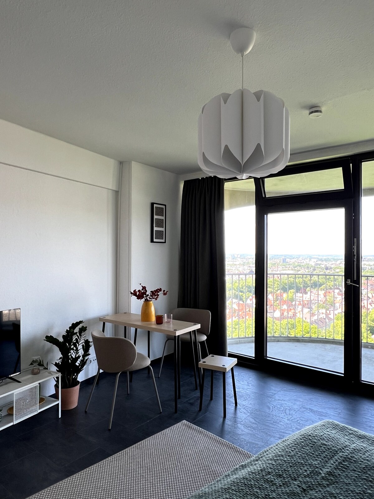 ¡Descubre Augsburgo desde arriba! Puedes disfrutar de la vista panorámica desde el piso 20 de nuestro elegante apartamento en la torre del hotel. Totalmente equipado con internet rápido, TV inteligente (Netflix, Prime, WOW), cocina pequeña y cómodo espacio de trabajo. Estacionamiento gratuito en la calle. A poca distancia a pie de la estación principal de tren y del tranvía que te lleva directamente al centro de la ciudad. Ideal para viajes de negocios y por la ciudad.