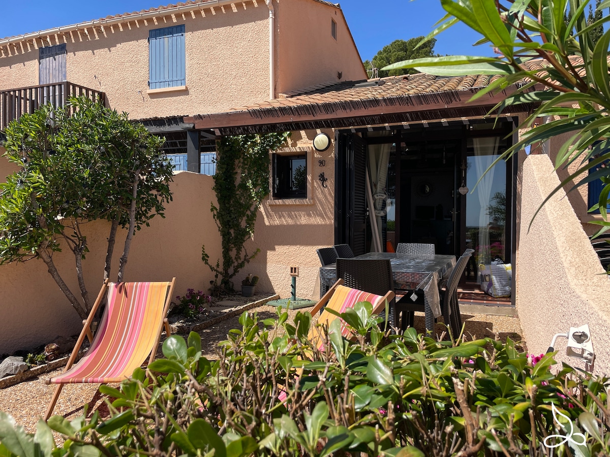 Casa típica de pueblo y su jardín en la garriga (tumbona, plancha...) en el encantador pueblo de Fitou. En la planta baja, garaje para sus bicicletas, windsurf… Arriba, gran sala de estar con doble orientación, cocina equipada, zona de estar con sofá cama de 160, zona infantil (dvd, libros, juegos), escritorio, dormitorio con cama de 160, baño contiguo. La cafetería y la panadería están a 1 minuto a pie, un gran aparcamiento gratuito a 50 metros; la playa de Leucate a 10 minutos. Un lugar tranquilo para pasar sus vacaciones.
