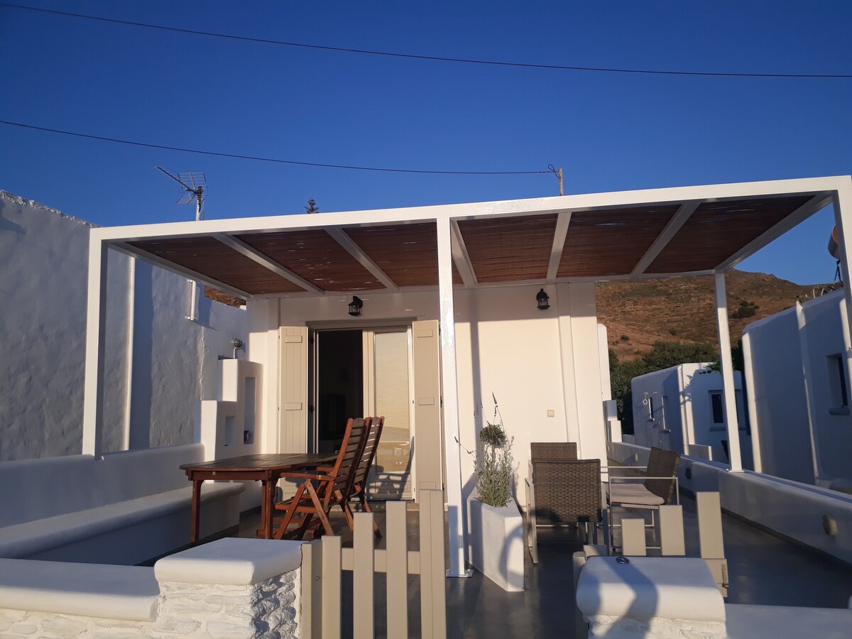 Esta propiedad cicládica frente a la playa se encuentra en un lugar pintoresco y virgen llamado Flambouria (a 12 km del puerto de Merichas). Tiene un balcón delantero donde puedes disfrutar de desayunos por la mañana, puestas de sol por la tarde y una vista envidiable del mar Egeo y un balcón trasero que conecta con un viñedo privado. Esta casa bien iluminada y acogedora (50 metros cuadrados) tiene capacidad para hasta 4 huéspedes (una cama doble y un sofá cama para 2 personas). Todas las habitaciones están amuebladas con cuidado y tienen todos los servicios.