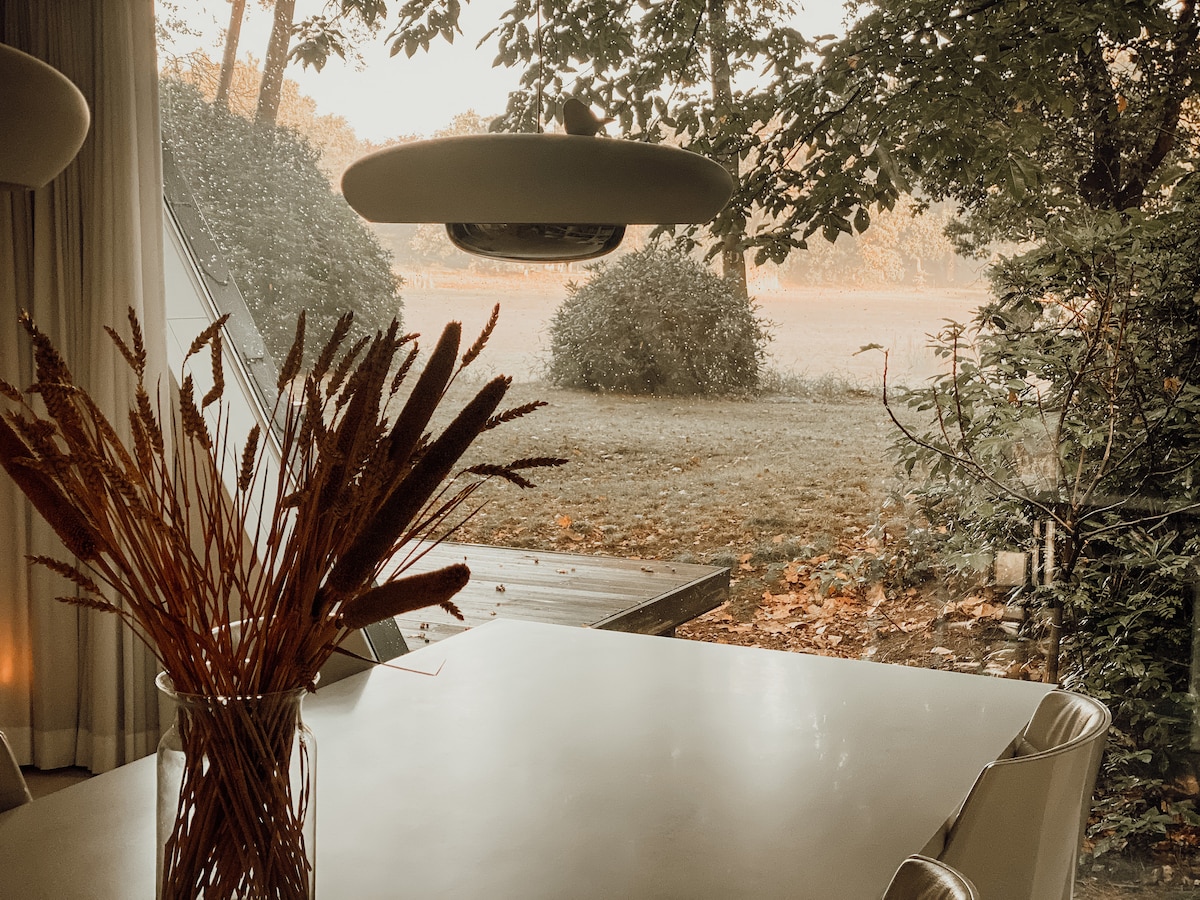 Luxe natuurhuis met wellness bij vijver
