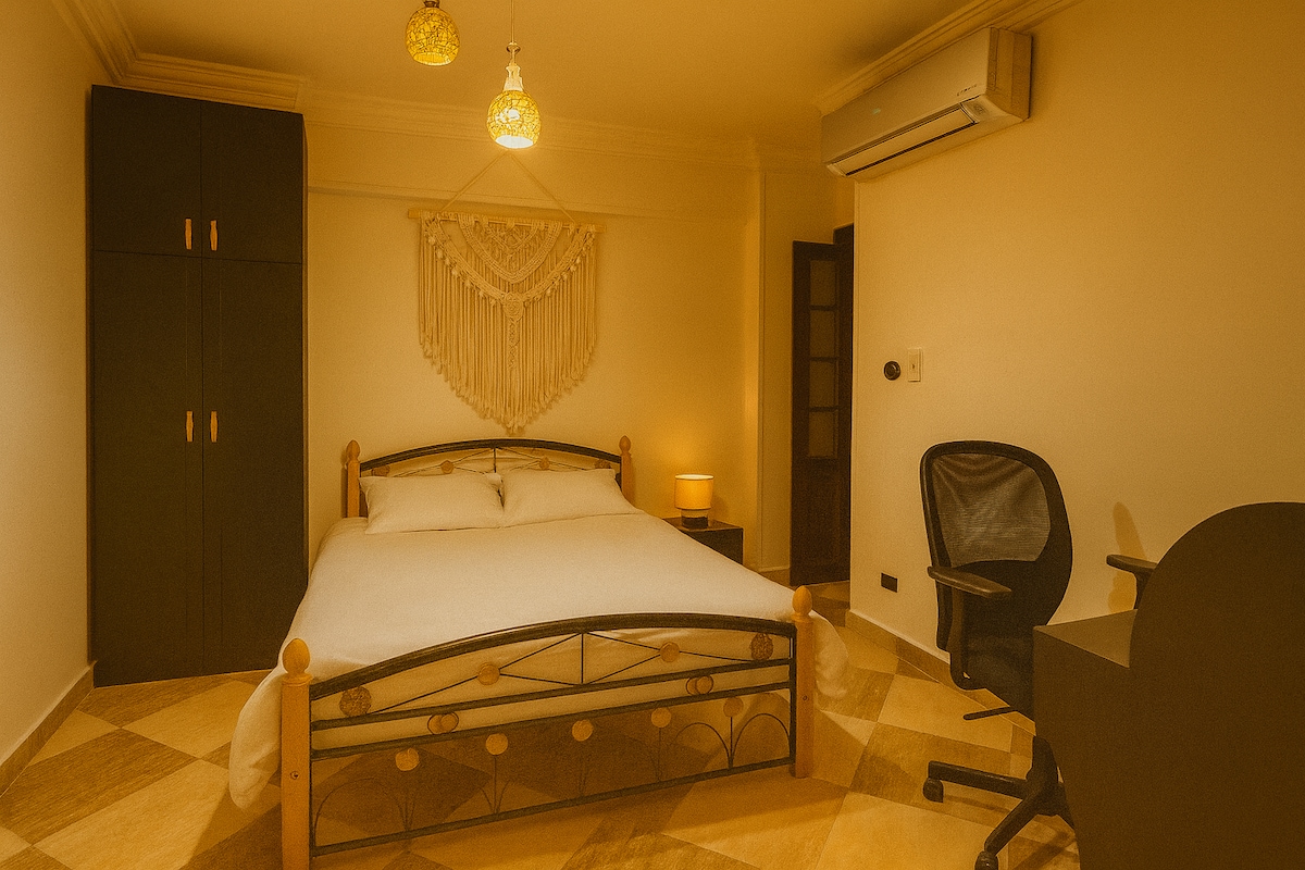 A 5 minutos a pie de la playa, restaurantes , cafeterías. 🏖️ Apartamento de 2 dormitorios decorado de lujo y moderno en Alejandría en una zona codiciada y prestigiosa / apartamento equipado: lavadora, 3 aires acondicionados en todas las habitaciones/ sala de estar, 3 televisores de pantalla plana en cada habitación, microondas, nevera y ducha con agua caliente Solo parejas casadas, excepción para europeos y norteamericanos. Solo solteros respetuosos. Se requiere identificación/certificado de matrimonio antes del check-in o en el momento del check-in El prestigioso edificio está a 5 minutos a pie del mar (Sin vista al mar)