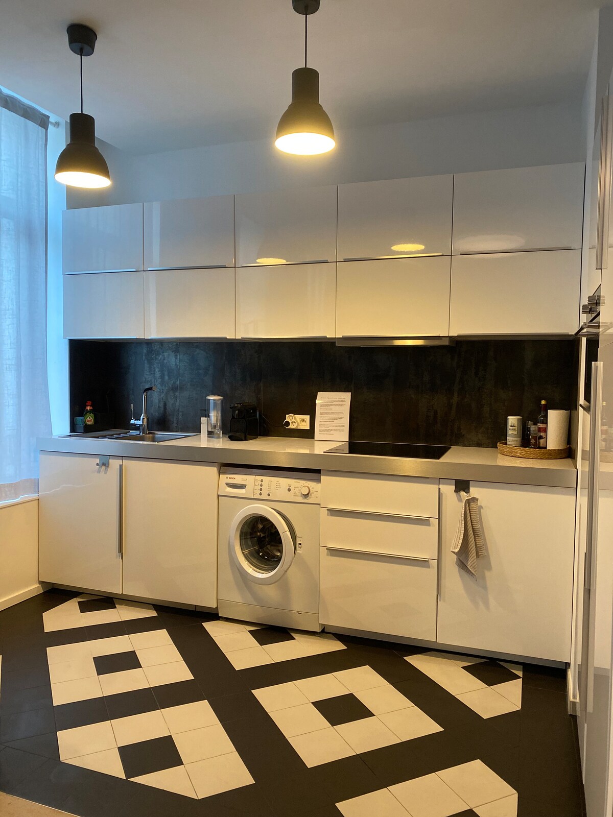La mejor descripción son nuestros comentarios. Un apartamento espacioso y decorado con buen gusto con un carácter de 160 m². Se ubica en el segundo piso de un pequeño edificio de 1925 idealmente situado en el distrito dinámico de Chatelain. Perfecto para 4 personas. Estarás en una zona tranquila mientras estás cerca de muchos restaurantes, bares, supermercados y tiendas locales. El transporte público necesario para mudarse en Bruselas está a 100 metros. Cerca de la avenida Louise, la Grand-Place y el centro de la ciudad.