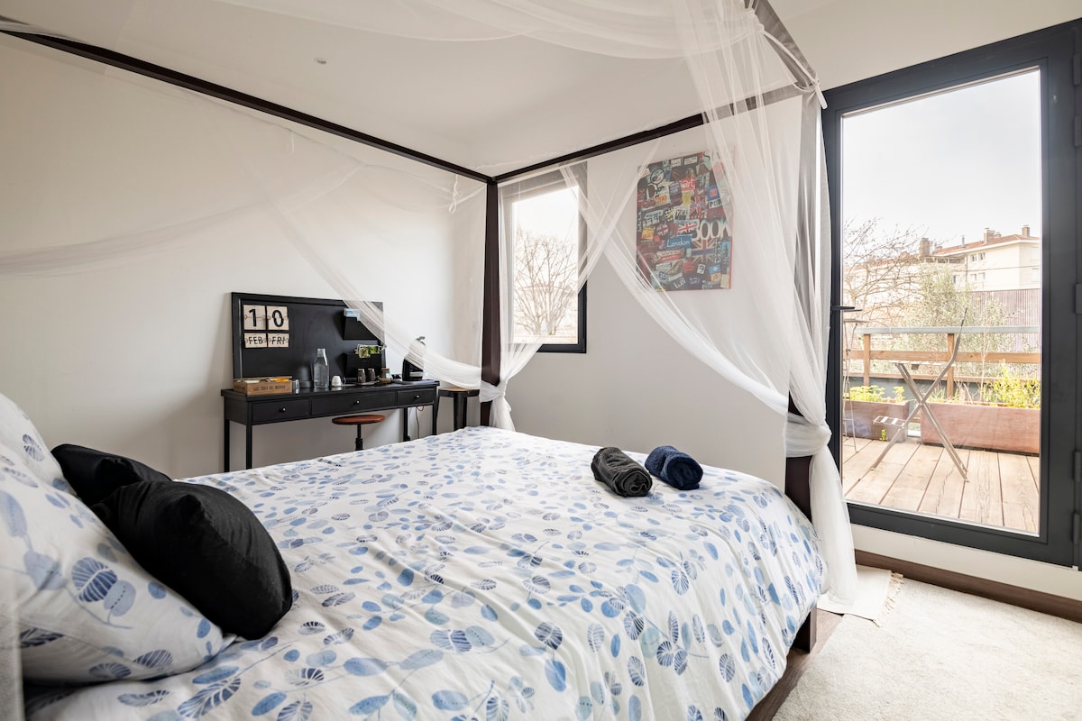 SUITE, aire acondicionado, baño privado, terraza 8 minutos de la estación de tren