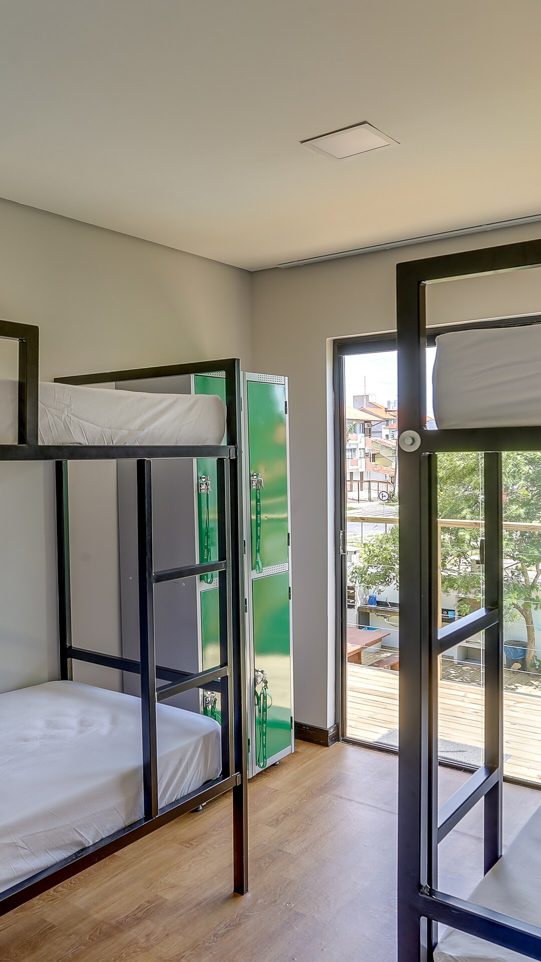 Quarto compartilhado de 4 camas localizado no PUP Hostel, com organização, limpeza e tranquilidade, em ótima localização. Situada no bairro Agronômica, próxima a restaurantes, farmácia, padaria, shopping, feira, supermercado e calçadão da Beira-Mar, e com pontos de ônibus próximos.