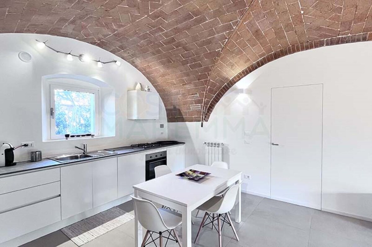 El apartamento se encuentra en la planta baja, en el centro histórico de Massa Marittima, a solo 100 metros de la Piazza del Duomo. Se puede llegar fácilmente desde todos los aparcamientos del centro histórico y a pocos pasos se pueden encontrar: bares, restaurantes, bancos, tiendas de alimentación, una pastelería y una farmacia. La casa recientemente reformada de 68 m, tiene una entrada independiente y consta de: una cocina con zona de cocina, un dormitorio doble, una sala de estar con sofá cama y un baño.