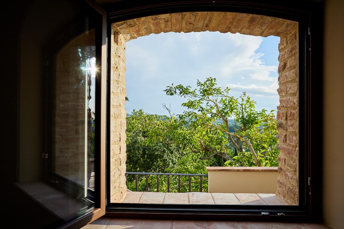La casa goza de una vista rara y encantadora del Val d'Orcia y Monte Amiata, lo que garantiza la máxima privacidad. Los interiores reflejan el encanto del estilo toscano, con muebles antiguos y acabados realizados por artesanos locales. Está equipada con un dormitorio doble, una gran sala de estar con una gran mesa, una pequeña cocina totalmente equipada y un sofá cama doble frente a la chimenea, en la sala de estar. En el exterior, el patio te permitirá comer con los colores de la puesta de sol como telón de fondo.