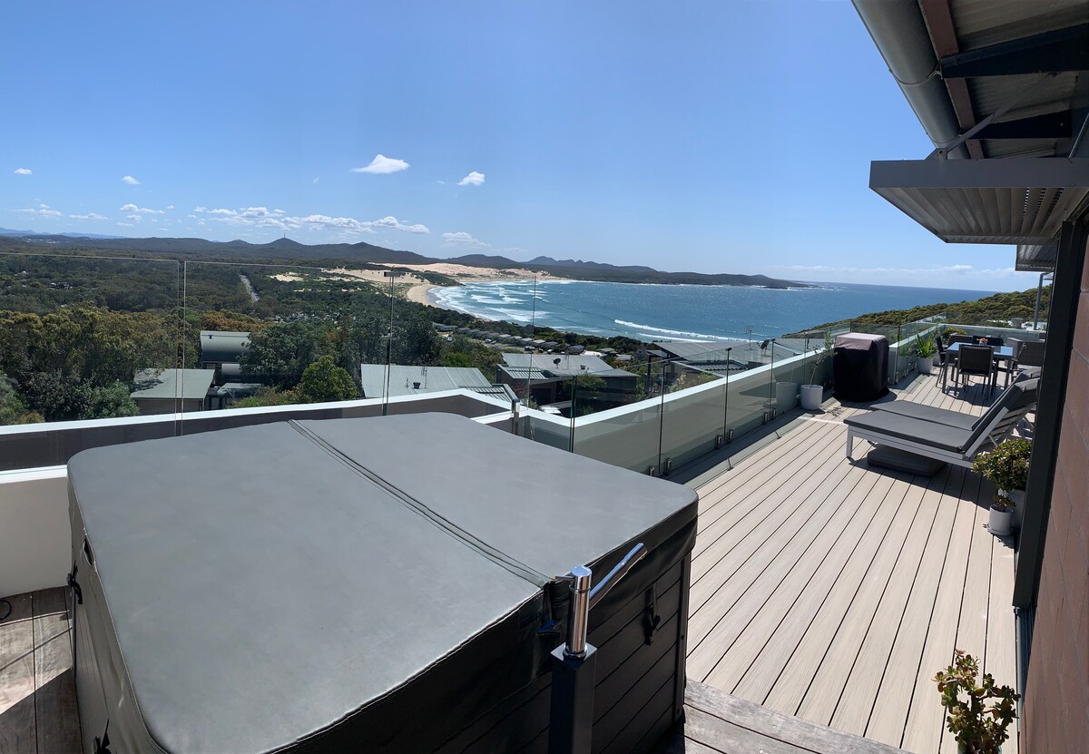 Arrowhead es un apartamento vacacional contemporáneo en la costa central de Nueva Gales del Sur. Ubicado en una tranquila finca residencial frente al mar en Hallidays Point, al norte de Forster, este moderno apartamento privado y autónomo para solteros o parejas ofrece un cómodo espacio para vivir y comer; wifi de alta velocidad de cortesía; cocina y lavandería bien equipadas; dormitorio separado con una cama tamaño queen y una maravillosa vista a la playa; elegante baño privado; aparcamiento seguro en garaje y entrada privada. Estancia mínima: dos noches.