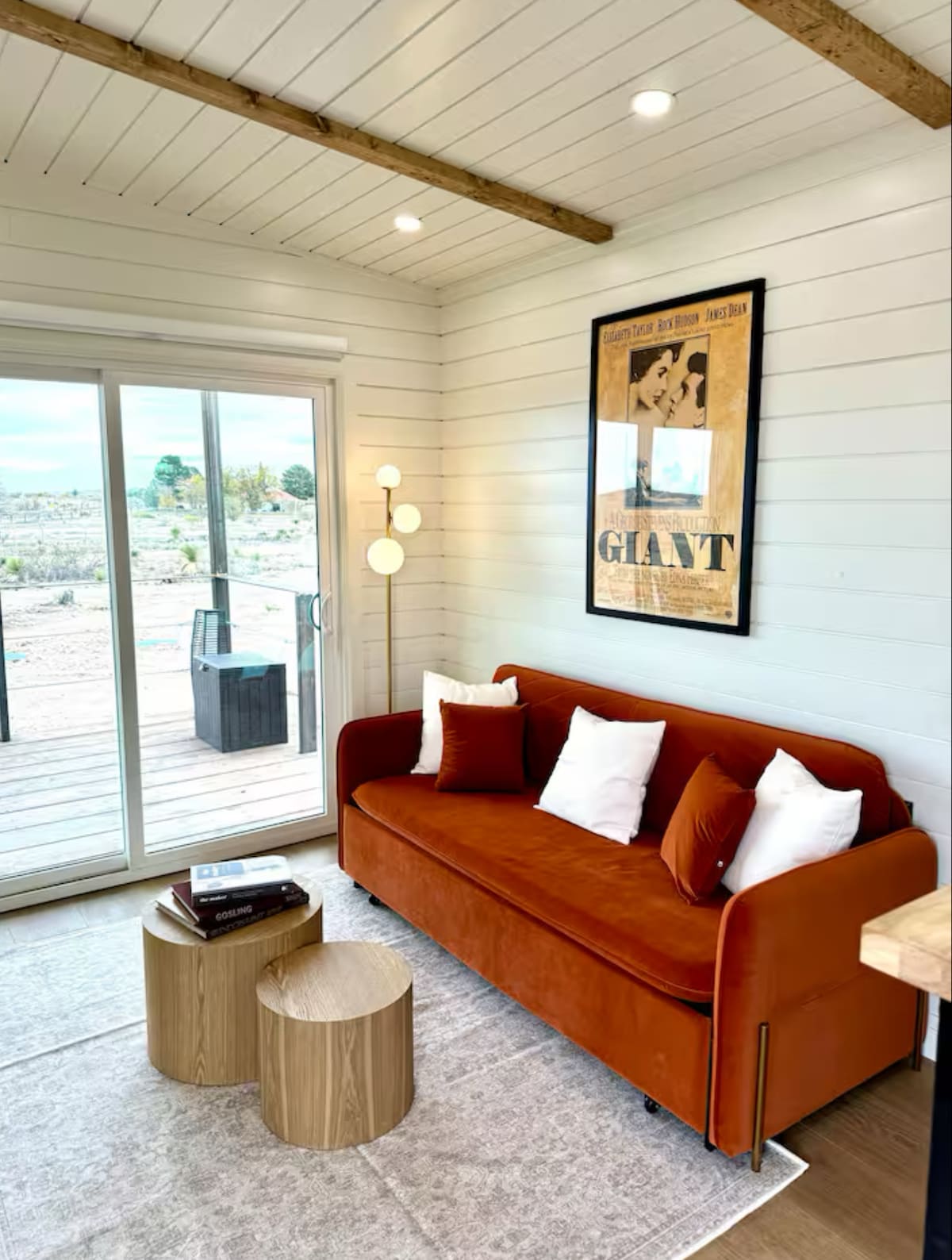 A una manzana del juzgado, esta elegante casita de 1/1 de nueva construcción es un espacio abierto y acogedor para parejas, amigos o una familia de 4 personas. Una casa de estilo estudio con un dormitorio grande con cama tamaño queen, cocina y baño, lavadora/secadora y amplio salón/comedor con techos abovedados de 13 pies. A solo 2 minutos a pie del centro de Marfa, el Hotel Paisano, la Fundación Judd, restaurantes locales, galerías y tiendas. Zona de estar privada al aire libre. Perfecto para fines de semana y estancias largas.