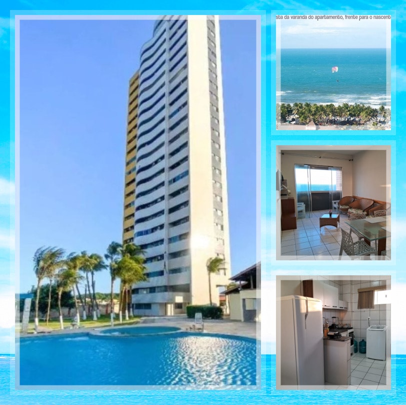 Apartamento em frente a uma famosa praia de Fortaleza com todo requinte de um resort, ao lado do Hotel Vila Galé e no caminho do beach park. Tem 2 suítes, com camas box e ar condicionado. Cozinha completa. Sala com sofá e uma mesa de jantar com 4 lugares. Varanda com armador de rede e uma mesa, uma vista maravilhosa da praia. Condomínio com segurança 24 horas, recepção, área de lazer completa, 4 piscinas, sendo uma com raia.