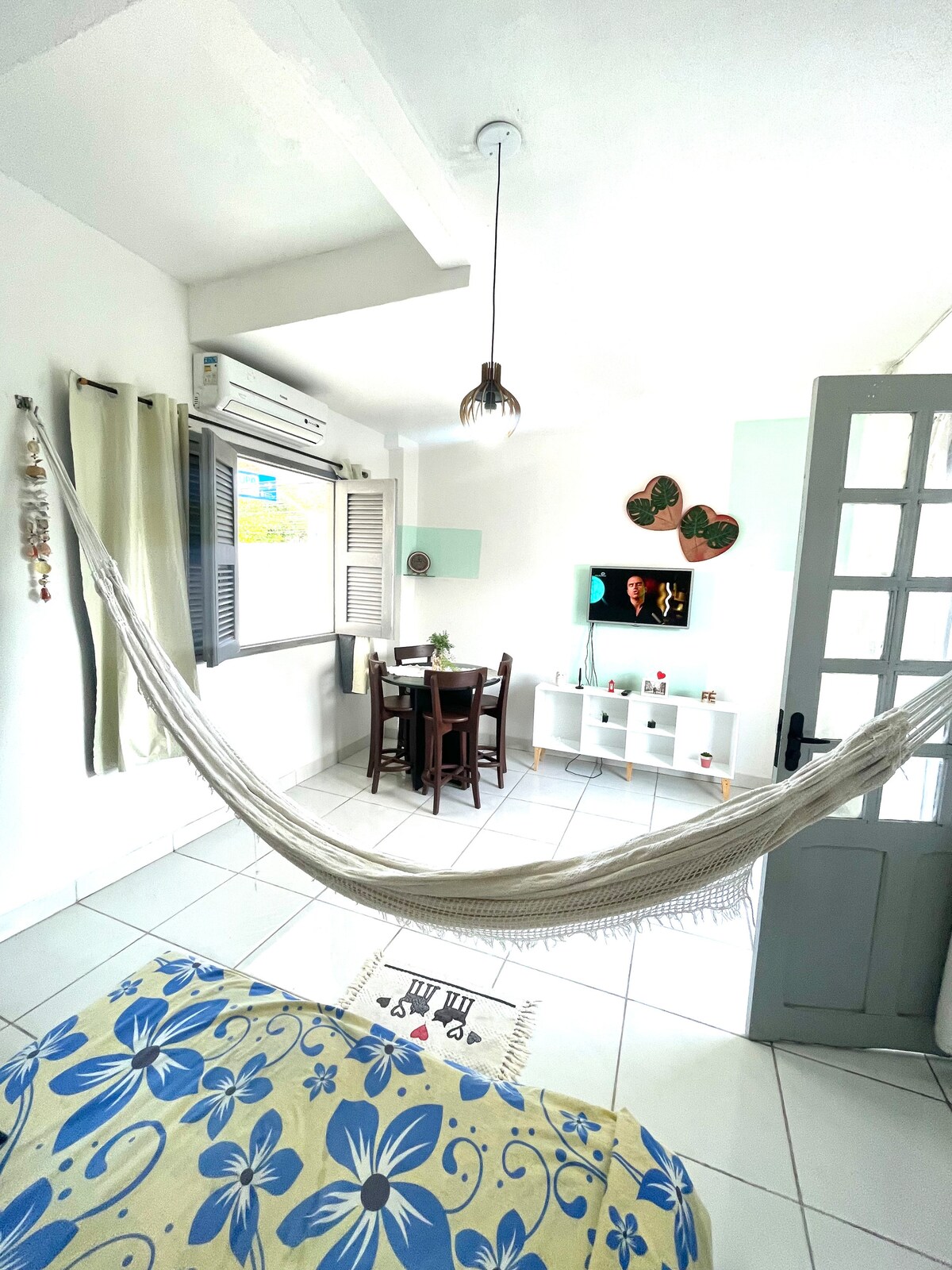 Nuestra suite es sencilla, limpia y ancha, ideal para aquellos que buscan un lugar acogedor y tranquilo para descansar y disfrutar de la ciudad. En el primer piso del edificio, con acceso por escaleras, nuestro espacio es un entorno familiar con el plus de estar muy bien ubicado y con fácil acceso a restaurantes y supermercados. Cerca del centro de la ciudad, Beira Mar y el Mercado Central de Fortaleza. La suite con aire acondicionado cuenta con una cocina en común con otros huéspedes.
