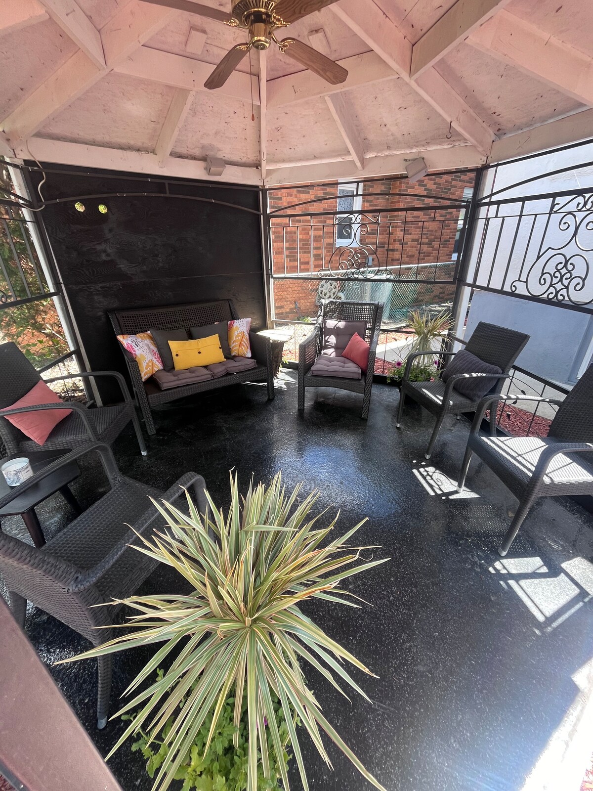 Disfruta de una experiencia moderna en esta suite del sótano recién renovada. Cocina totalmente equipada con electrodomésticos de tamaño apartamento, barra de café y filtración de agua. Dos cómodas camas tamaño queen, amplia sala de estar con TV y servicios de streaming, y baño de 3 piezas con ducha de efecto lluvia. Acceso al espacio exterior compartido con barbacoa, chimenea y asientos al aire libre. A pocos pasos del centro histórico y orgullosamente asociado con PoolHouse Coffee Roastery para ofrecerte el café más fresco de la ciudad.
