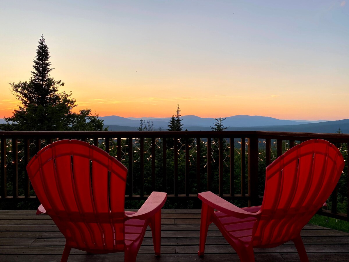 Welcome to the Last Chair Lodge - our family-friendly mountainside retreat at Saddleback Ski Area in Rangeley, ME. Custom, Maine-made Cedar Hot Tub! Incredible views - and sunsets - in all seasons. Ski-in/Ski-out in winter (natural snow dependent), in summer enjoy a peaceful, beautiful and comfortable mountain retreat. Come for outdoor adventures, time on the nearby lakes or just to unwind and soak in the scenery. One of very few mountainside listings with a hot tub, A/C and views!