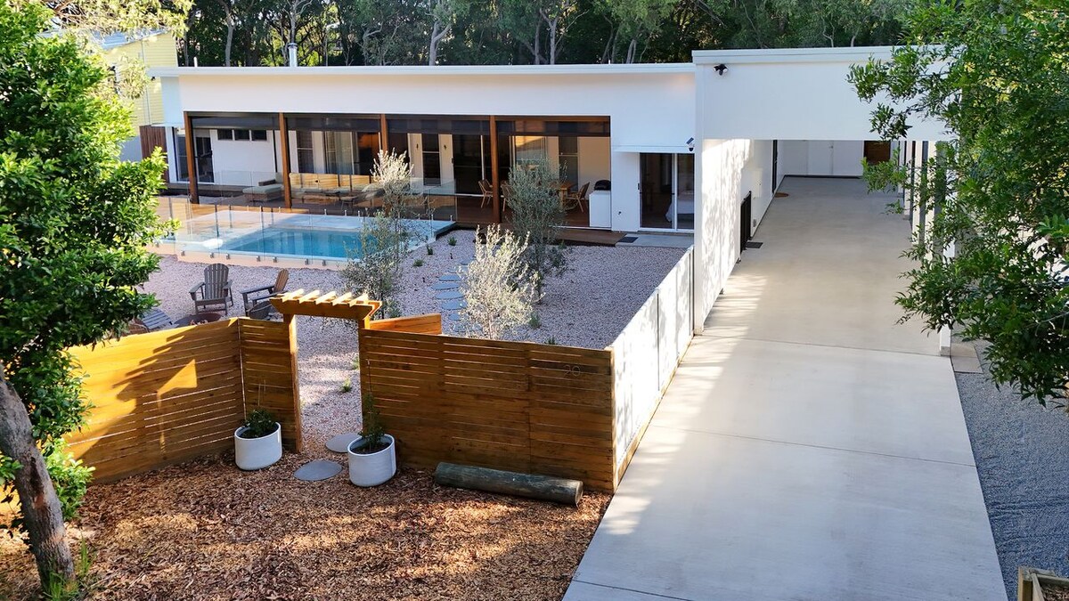 ¡A solo 5 minutos de la playa, esta casa de vacaciones de ensueño tiene capacidad para 17 personas y lo tiene todo! Con 5 dormitorios, 3 baños grandes, aire acondicionado en todas partes, cocina de chef, sala Rumpus con TV inteligente de 75pulgadas, bar, chimenea, comedores formales/informales y al aire libre. A los niños les encantará su propio salón con TV y Nintendo Switch. El retiro de los padres de arriba incluye una cama tamaño king, literas, salón y TV. Exterior: piscina, hermoso patio cercado apto para mascotas, chimenea, cancha de tenis/pickleball y espacio para barcos, automóviles y caravanas.