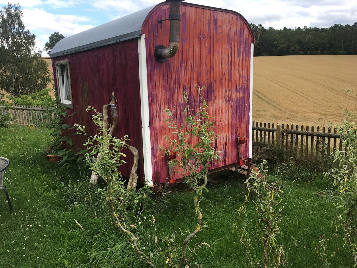 Sencillez combinada con relajación. Este pequeño vagón con horno está disponible para una o dos personas en una propiedad soleada. Proporcionas tu propio estándar de acampada, traes tu propia cocina, platos, sacos de dormir, etc. y usas el espacio exterior para cocinar y comer. Hay un baño disponible para uso común en la casa, así como ducha en el jardín. El sofá cama tiene una sábana. Hay un tazón de fuego para las noches románticas, los ciervos ladran para las buenas noches.