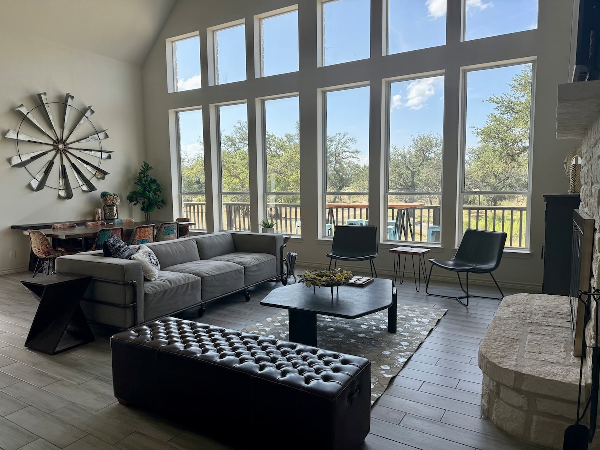 Finca privada con ~1500 pies de fachada en el río Little Blanco (generalmente seco debido a la sequía). Las ventanas de gran tamaño dan al antiguo bosque de robles, con 20 acres de senderismo privado. Lujosa piscina y jacuzzi, gran patio con chimenea y barbacoa para comer al aire libre bajo un gran dosel de árboles. 3 dormitorios privados, cada uno con baño privado, además de una habitación extra (fuera de la habitación principal) con litera triple para niños o adultos. Sofá cama tamaño queen extraíble adicional y un baño adicional. ¡Tranquilo, exclusivo y silencioso!