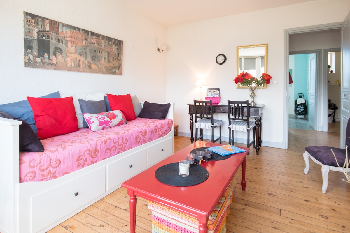 El apartamento está a 50 metros de la playa del centro, cerca del puerto y del centro de la ciudad. Situado en una residencia muy tranquila, totalmente reformado, tiene una terraza con vistas al mar. Dispone de un dormitorio con cama de matrimonio y un salón con un sofá . También hay una cuna disponible previa petición. Se alquila solo para 2 adultos y un bebé. El acceso al mar se realiza a través de una vía privada. Las tiendas están a 5 minutos a pie. No se aceptan mascotas.
