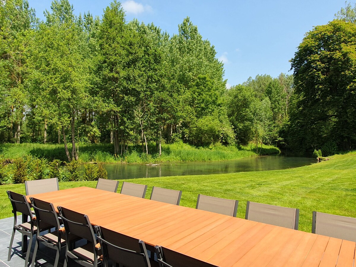 Venga a relajarse en nuestro chalet con todas las comodidades, ubicado al borde de un estanque, con un spa privado ilimitado para momentos de relajación inolvidables. Idealmente situado: 30 km de Amiens, 20 km de Abbeville, 40 km de St-Valery-sur-Somme, 45 km del Crotoy estará a las puertas de la hermosa Bahía de Somme. Disfrute de agradables paseos en bicicleta o senderismo, los senderos salen directamente desde el chalet. Para los amantes de la pesca: ¡sesiones ilimitadas, con total tranquilidad y privada!