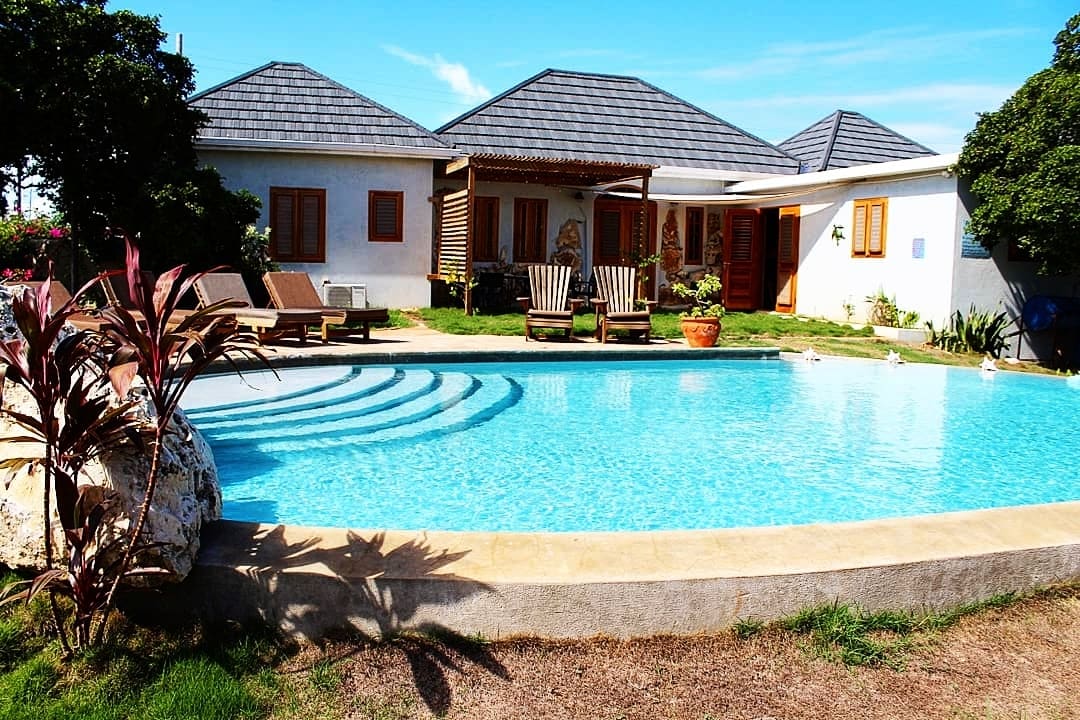 Una encantadora villa ubicada en una ubicación codiciada en Treasure Beach. Tiene un ambiente ecológico y está rodeada de exuberantes jardines tropicales con una zona de piscina privada en la parte trasera y una gran terraza en la parte delantera. Se encuentra en una zona tranquila, pero a poca distancia a pie o en bicicleta de tiendas, restaurantes y servicios locales. La playa se encuentra justo al otro lado de la carretera, con la entrada a menos de dos minutos a pie. Tiene buena conexión a internet y es el lugar perfecto para estancias largas y trabajar a distancia.