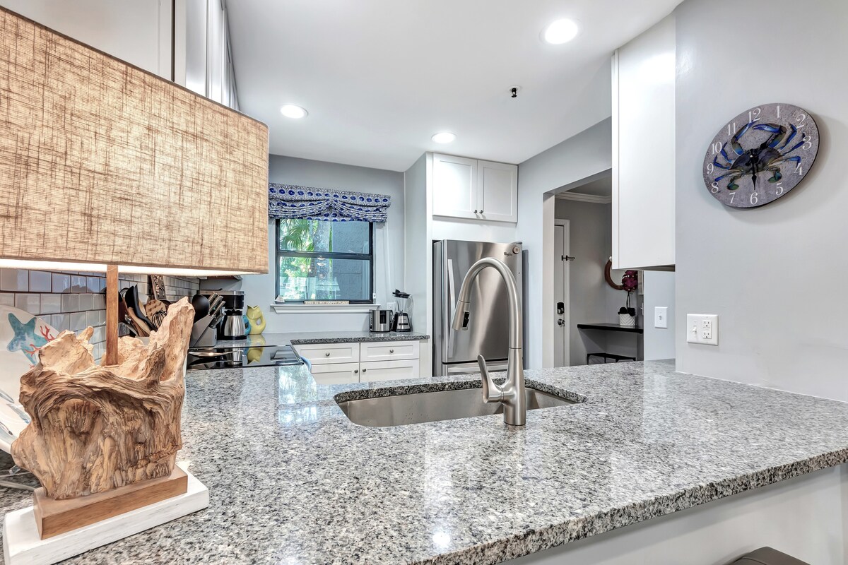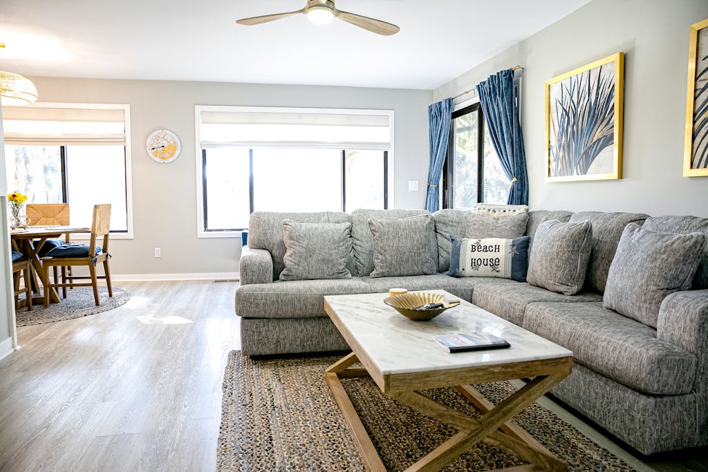 Acogedor, moderno y diseñado con carácter, este apartamento de 2 habitaciones y 2 baños recientemente remodelado es el más cercano a la playa, una joya escondida de Hilton Head, con vistas a la laguna y al estrecho. Cama tamaño king en el dormitorio principal, camas individuales en la habitación de los niños: solárium cerrado, 3 piscinas, jacuzzi, tenis. Cocina totalmente abastecida con una barra cafetera, favorita de los huéspedes, que se reabastece con productos frescos en cada estancia. Lavandería en el alojamiento, televisores de pantalla grande en todas las habitaciones, todo el equipo de playa que necesite (carrito, sillas, tablas, juguetes y mucho más), Internet de 400 MB, ¡sin tarifa de limpieza!