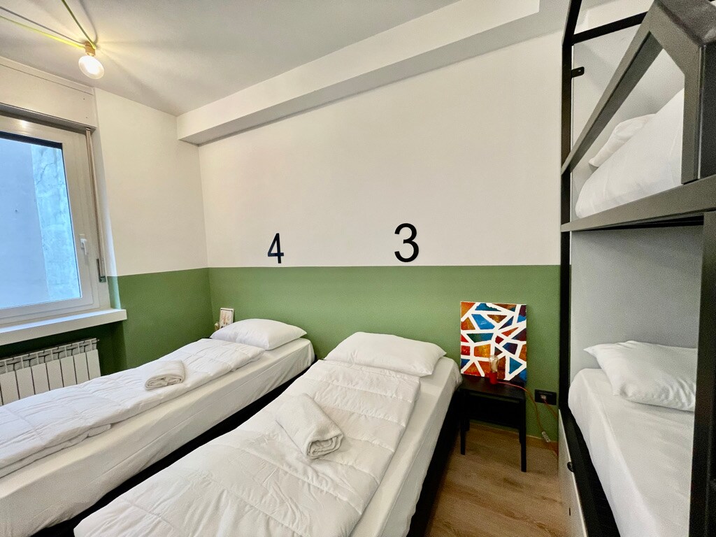 ControVento2 es un nuevo hostal ubicado en el centro histórico de Trieste. En el tercer piso de un edificio del siglo XIX, donde la historia se encuentra con el mobiliario minimalista hecho a mano, el ambiente es muy relajado y hogareño. Nuestro dormitorio con vista al mar es espacioso y está lleno de luz natural, hay 5 literas para hasta 10 personas. Hay 2 baños compartidos, uno para mujeres y otro para hombres, y una cocina equipada. El desayuno está incluido y el wifi es gratuito y confiable.
