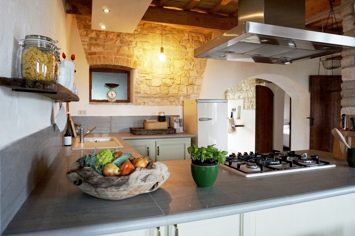 Escápate a las colinas de Umbría en esta granja actualizada (90 m2 en 2 plantas) que conserva su encanto original. La casa cuenta con techos abovedados clásicos con vigas, acabados de piedra originales, una chimenea interior de leña, una entrada privada y una terraza privada en el jardín. La piscina compartida tiene una gran zona de solárium. Si tus fechas favoritas no están disponibles, echa un vistazo a nuestro apartamento turquesa. Turquesa: https://www.airbnb.com/rooms/plus/9430389.