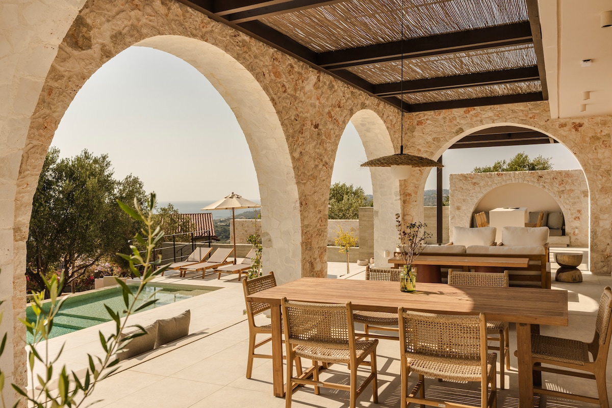 Recientemente renovada con cuidado, Villa Aiolia es una villa de piedra del siglo XVIII, que se encuentra en una posición elevada, rodeada de un paisaje natural tranquilo. El pueblo en sí es pequeño, histórico y está bien cuidado, por lo que es imprescindible dar un paseo para explorarlo. La casa es un excelente punto de partida para explorar y un lugar increíble al que volver. A 6 minutos de la playa de Petani (fácilmente equiparable a la famosa playa de Myrtos) puedes encontrar numerosos restaurantes y admirar impresionantes puestas de sol. El centro de la ciudad está a 16 minutos en coche.