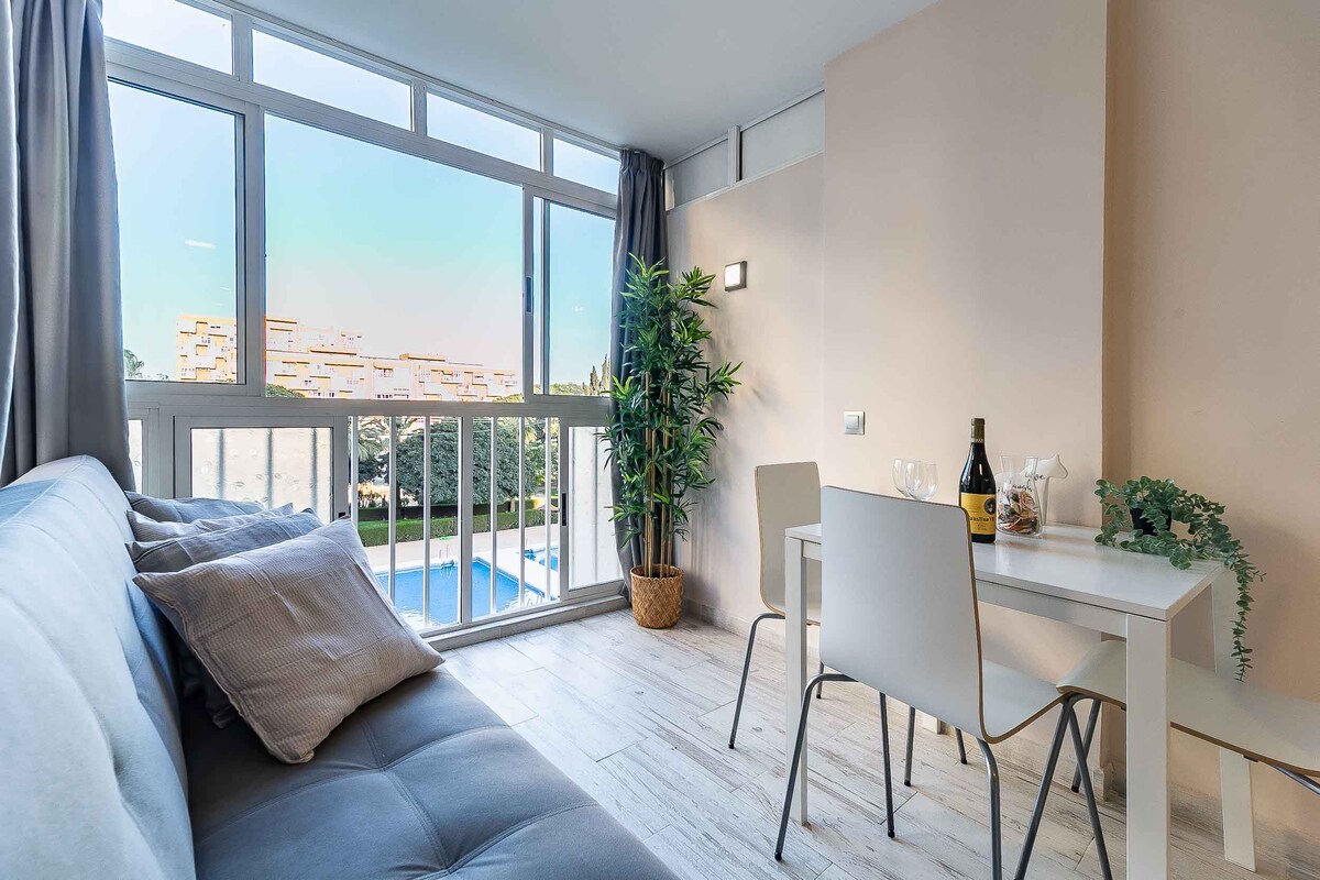 Relájate y desconecta en este alojamiento tranquilo y elegante junto al mar, con piscina. Loft recién reformado con todas las comodidades. TV 65p con televisión internacional, aire acondicionado, Wifi, lavadora, cocina, cama abatible de 140X200. Supermercados, Farmacia, Estanco, Gasolinera, Restaurantes y la playa a solo 200 metros caminando. Desayuno de cortesía incluido.