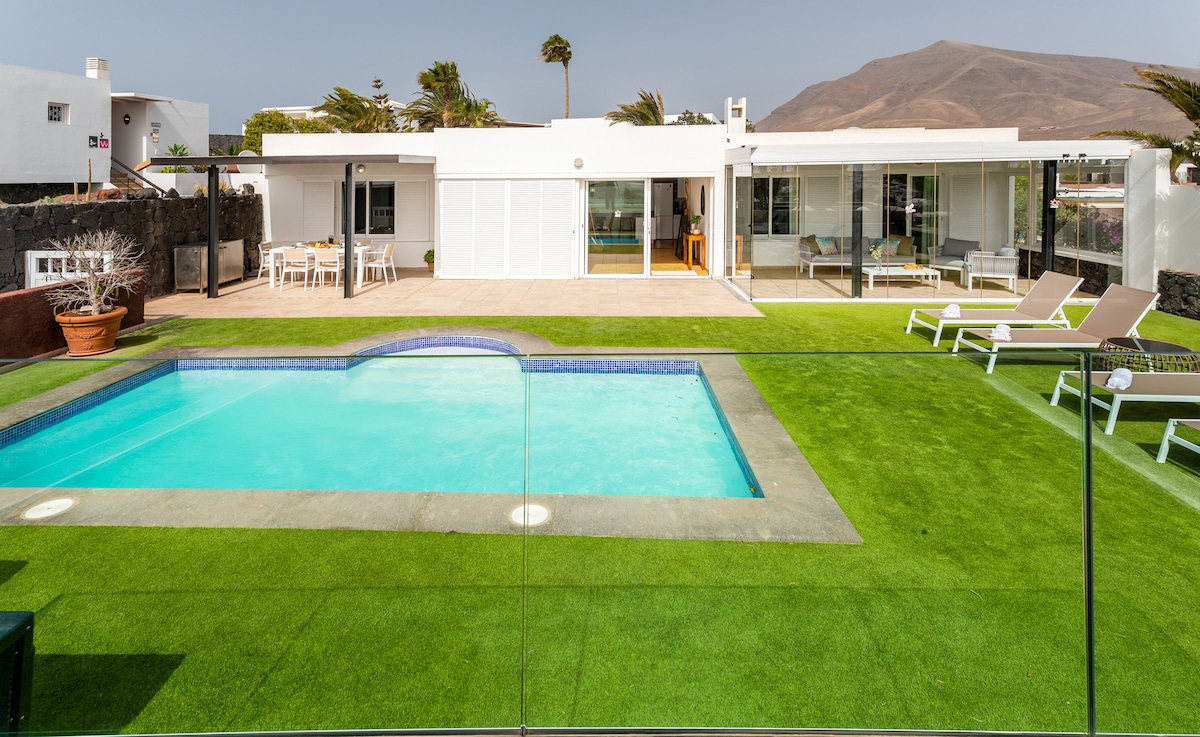 Acerca de Villa Ole Disfrute del lujo en Villa Ole, una impresionante villa con aire acondicionado situada en el hermoso complejo turístico Bahiazul, en Corralejo. Esta propiedad de dos plantas cuenta con una piscina privada y una terraza con jacuzzi, y ofrece unas vistas impresionantes del océano Atlántico. La villa tiene capacidad para 6 personas gracias a su amplia distribución, que incluye una sala de estar, una cocina totalmente equipada, 3 dormitorios, 3 baños y 4 aseos.